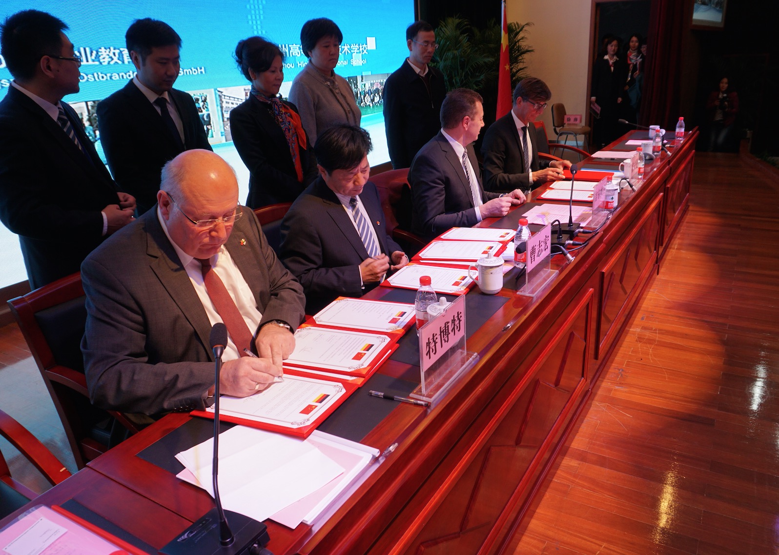 下午三點半,德國萊比錫工商業(yè)聯(lián)合會蘇州培訓及考試中心簽約儀式在蘇高職隆重舉行。德國萊比錫工商業(yè)聯(lián)合會、德國bbw教育集團、蘇州市教育局、蘇州市高新區(qū)黨工委等單位的主要領導等出席了簽約儀式。會上,德國bbw教育集團中國區(qū)負責人Teubert先生、蘇高職校長曹志宏先生、高新區(qū)管委會徐萍副主任、蘇州市教育局顧月華局長、萊比錫IHK主席Kirpal先生先后致辭。Teubert先生也發(fā)表了對中德職業(yè)教育的殷切希望,期待德國職業(yè)資格證書的引入能夠提升中德職業(yè)教育的質(zhì)量、水平,對專業(yè)人才的標準化和國際化帶來新的推動力。